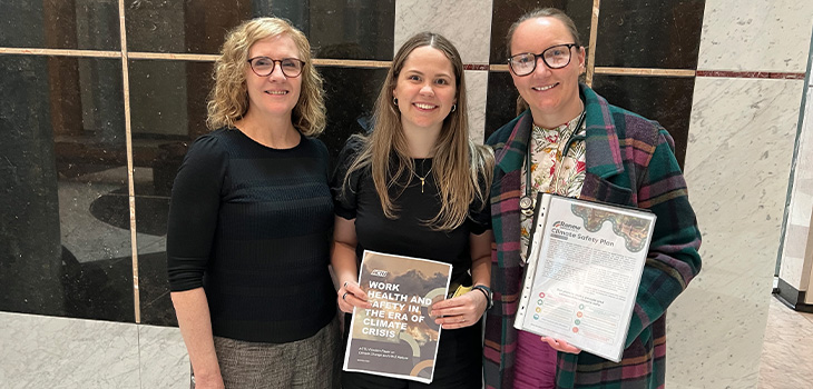 L-R ANMF Federal Secretary Annie Butler, ANMF Climate Change Officer Catelyn Richards and ANMF Victorian Branch member Sigrid Pitkin