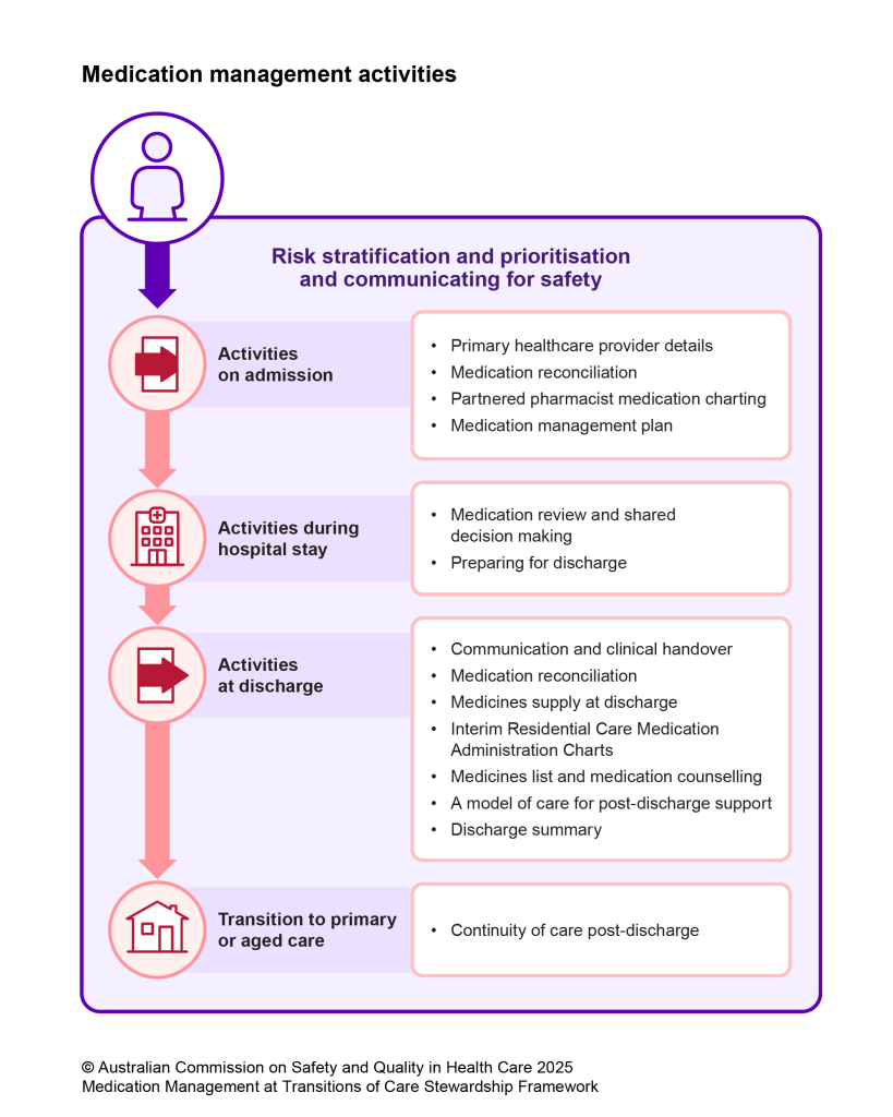The Australian Commission on Safety and Quality in Health Care’s Medication Management at Transitions of Care Stewardship Framework provides the first coordinated, hospital-based approach to manage medicines during this high-risk period for patients.