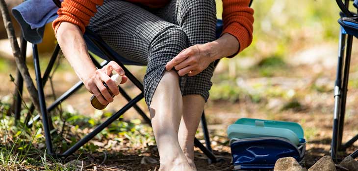 Precautions may include wearing light coloured clothing, using mosquito nets and mosquito repellent creams on unexposed skin, particularly while travelling and camping outdoors in summer.